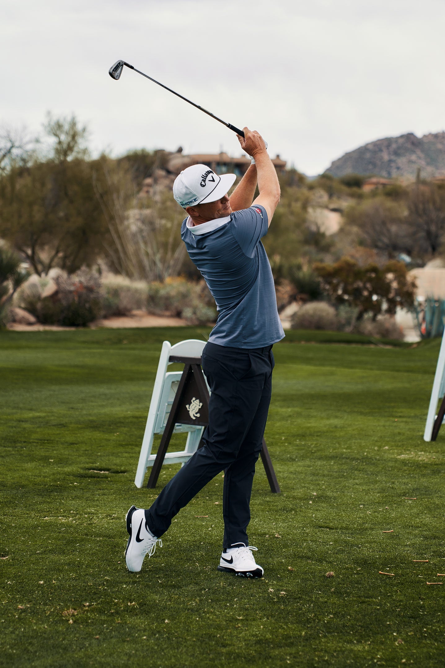 Alex wears the TR Tour Shirt and Lightweight Trousers while training in Scottsdale, Arizona ahead of the WM Phoenix Open.