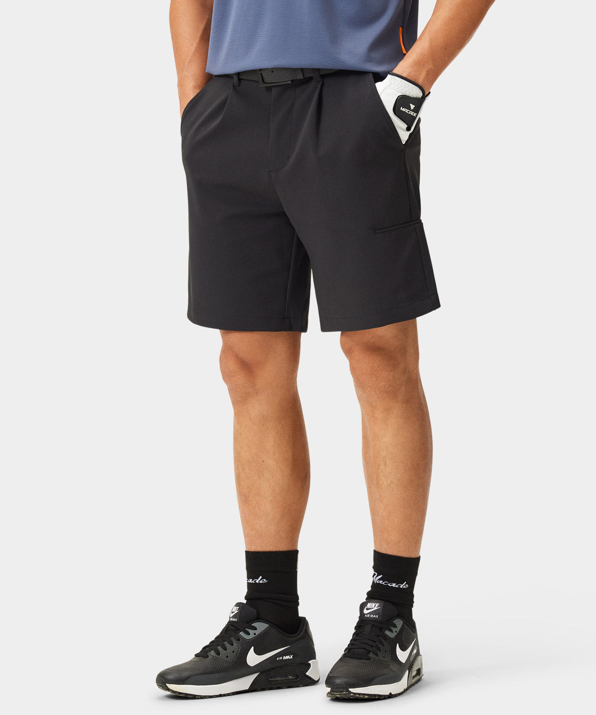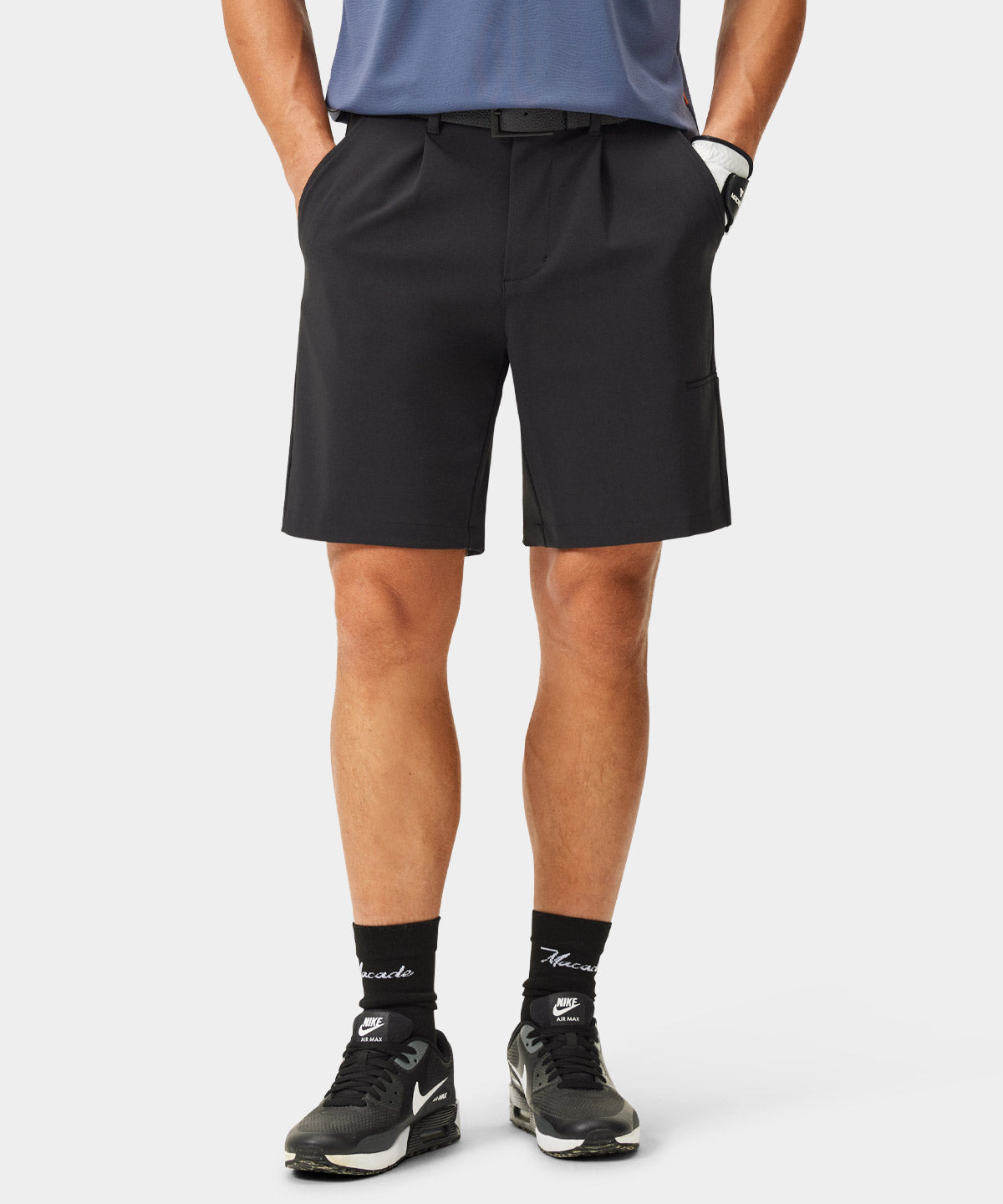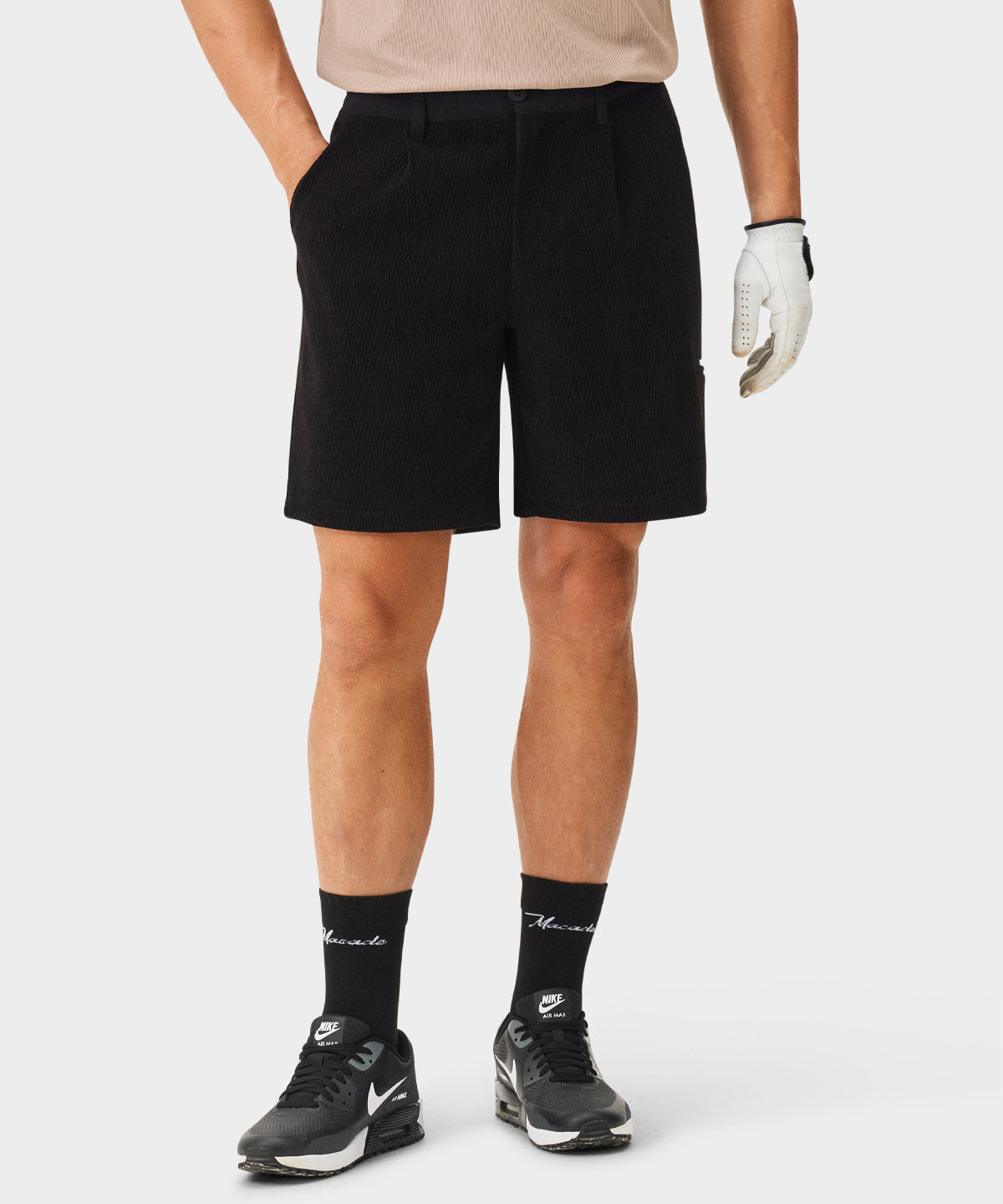 Lightweight with a clean surface and a structured, athletic silhouette. The four-way stretch fabric supports full freedom of movement while maintaining a polished look through wear. A reliable option for warm days on the course and high-summer play.