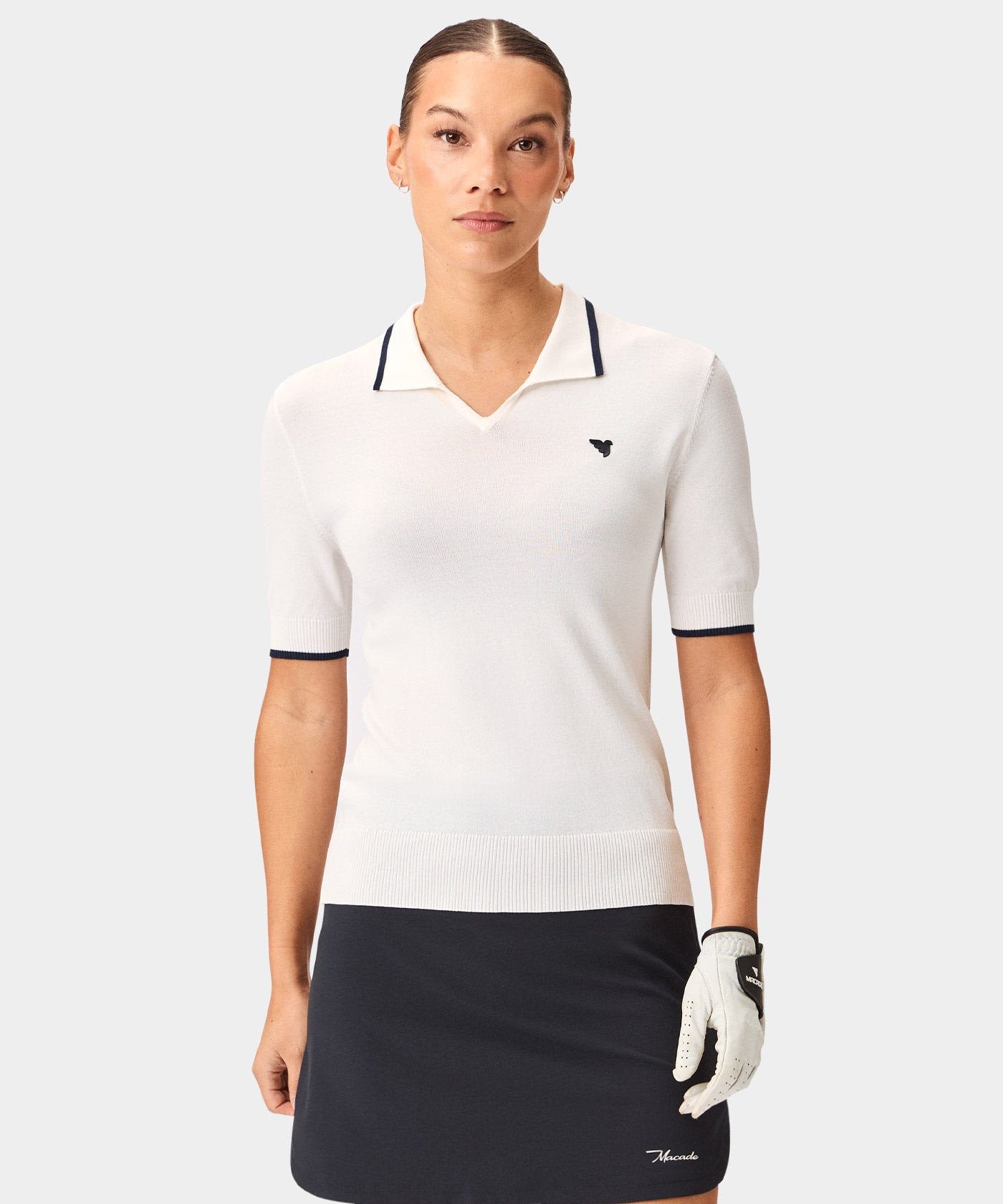 A classic, sleek look for your next tournament round. The super-soft fabric of this shirt keeps you comfortable and dry for hours under the sun. A limited edition piece designed for the Masters Collection, accented by the unique Macade Script logo on the chest.