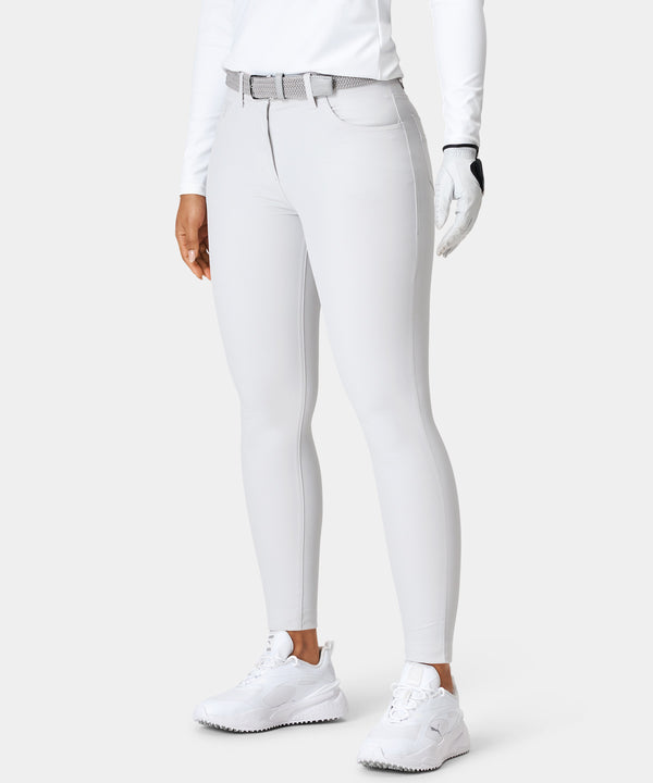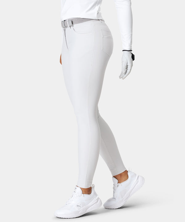 These white five pocket trousers may look like your everyday pants, but are in fact jammed with performance properties which makes them perfect for golf. The stretchy twill fabric is lightweight and soft which makes them extremely comfortable to wear, while the tapered fit of the trousers ensures a form fitting look and feel. Equipped with an elastic waistband with silicone gel lining which prevents your golf shirt from riding upwards.