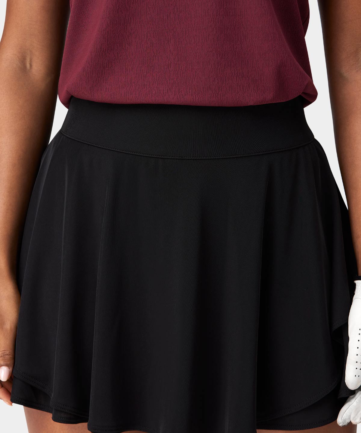The double layer structure of thin stretch fabric makes our Cleo Tour Skirt a playful and light piece for any golf occasion. The skirt features attached inner shorts for added comfort and coverage. Crafted for breathability and durability, this skirt is ready for action.