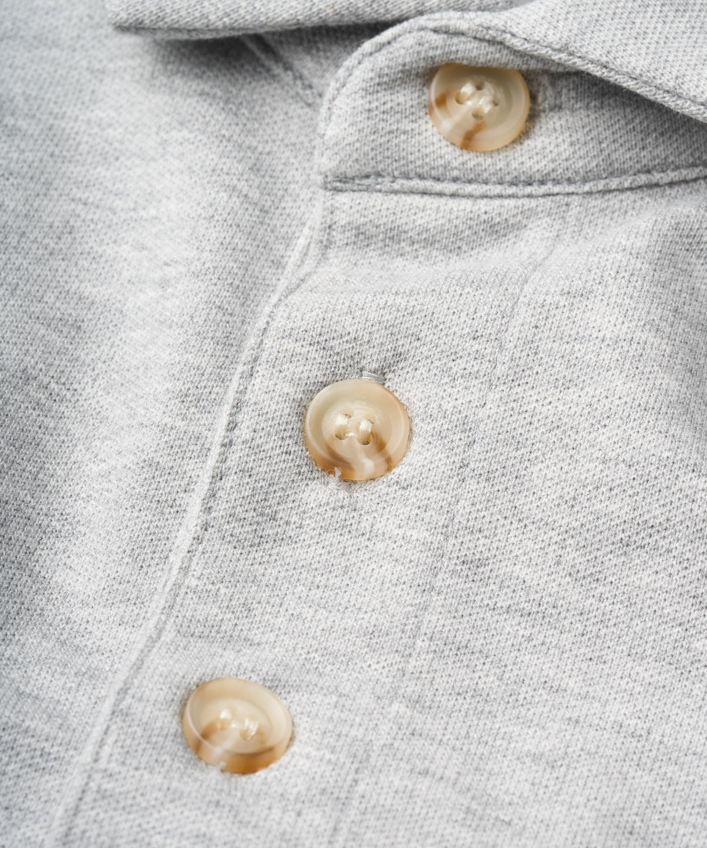 A classic polo elevated with bold character. Crafted from a structured cotton-blend pique, it offers a clean drape and lasting comfort through every swing. The chest script and signature red patch add a touch of individuality, while the spread collar and tonal buttons refine the look. Designed for both the course and the clubhouse, this piece embodies effortless confidence with a modern edge.