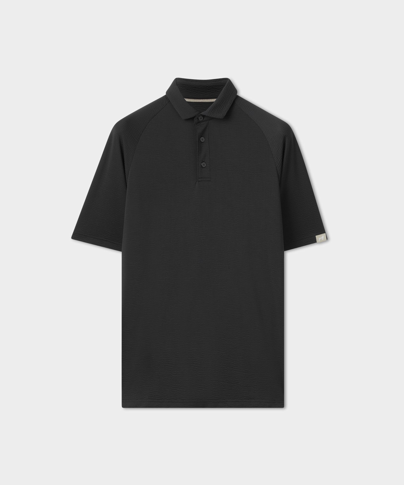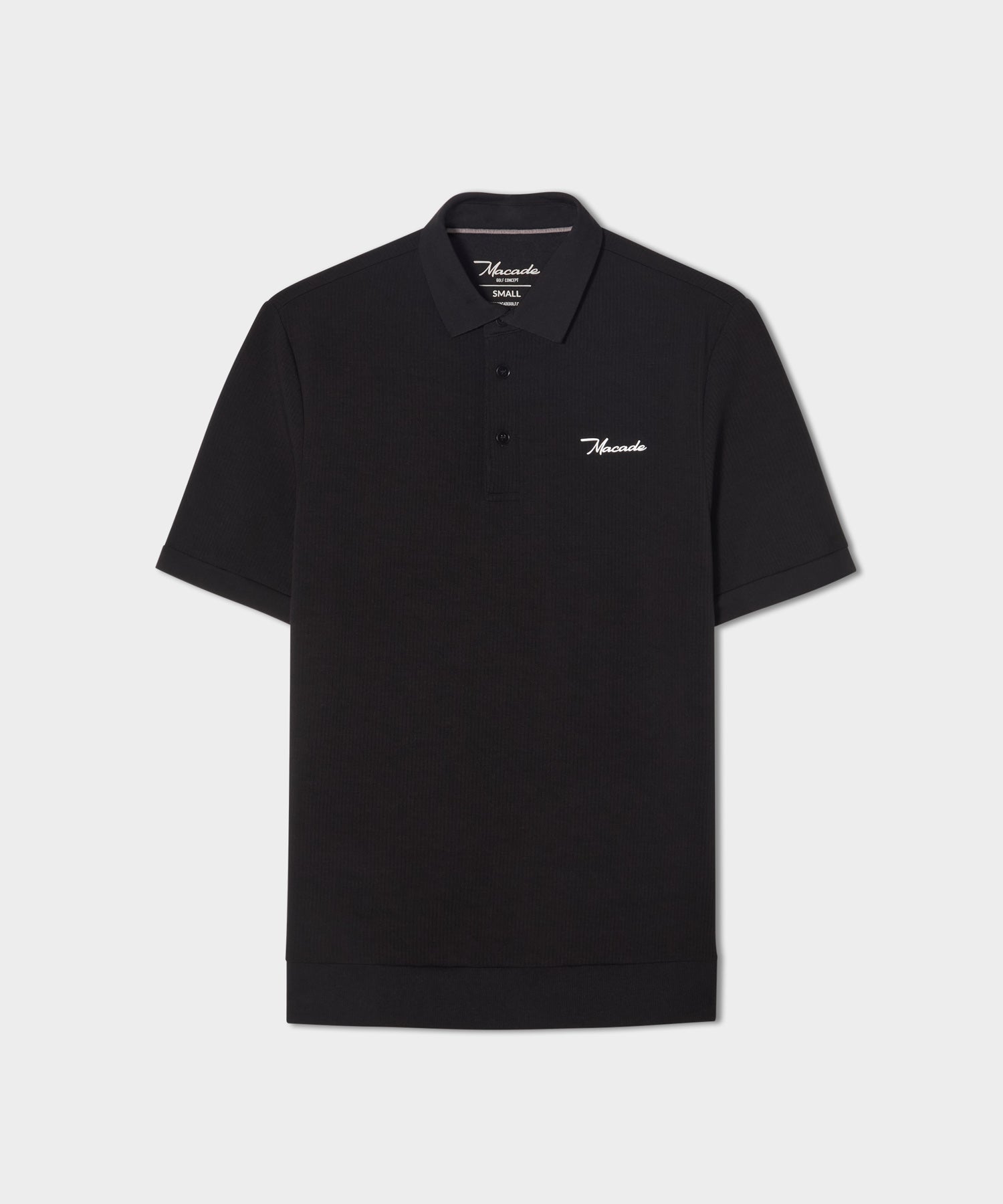 A Macade Golf essential. A relaxed bomber style collared shirt made from a soft and stretchy fabric. This comfy shirt features a ribbed texture along with a boxy cut and straight stitched hemlines, giving it a drapey yet structured silhouette. A modern look for the course.