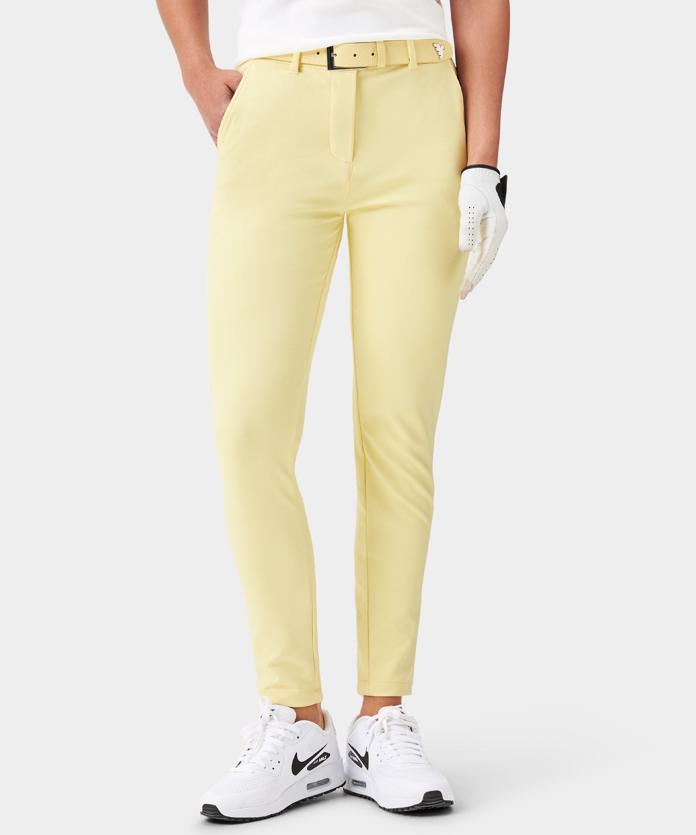 A clean performance trouser with a straight silhouette and a smooth, technical surface. The stretch fabric feels light and responsive, designed to move freely while keeping a sharp shape. A reliable option for long playing days and smart clubhouse styling.