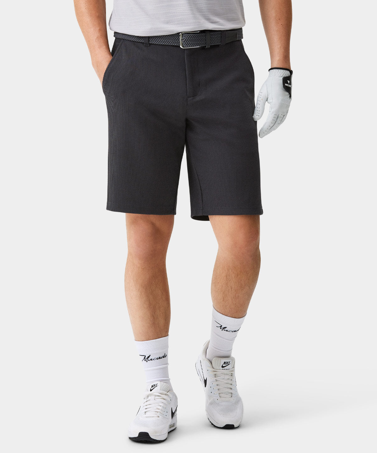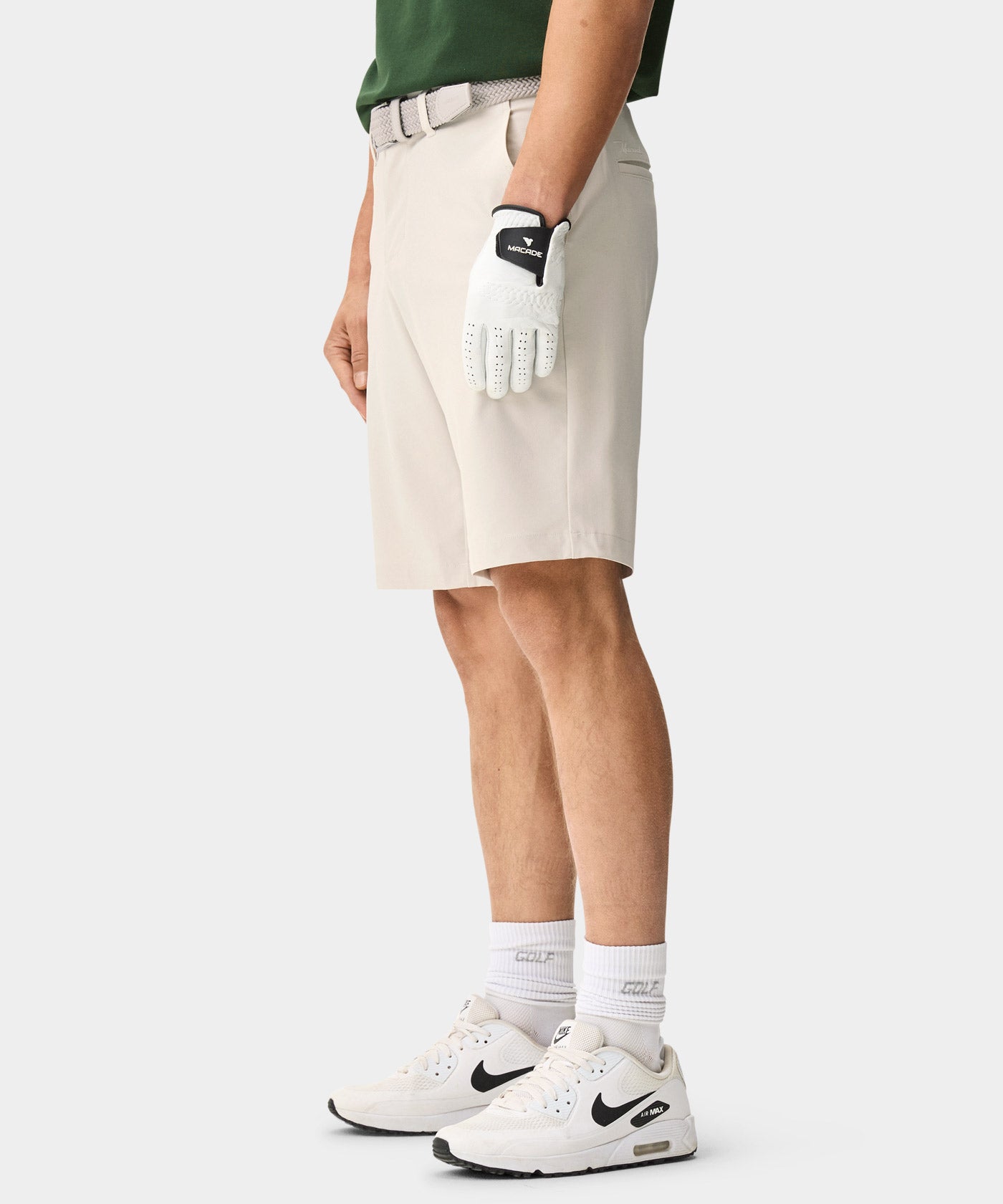 Lightweight with a clean surface and a structured, athletic silhouette. The four-way stretch fabric supports full freedom of movement while maintaining a polished look through wear. A reliable option for warm days on the course and high-summer play.