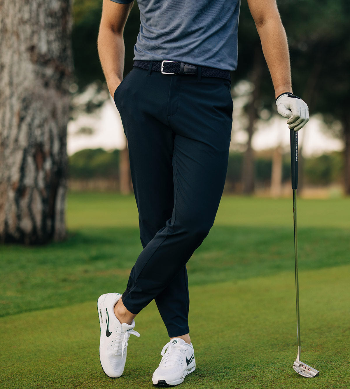 Designed for performance and comfort, these joggers are crafted from a lightweight, four-way stretch fabric that ensures maximum freedom of movement on and off the course. Available in multiple lengths, they feature cuffed ankles with discreet zippers for effortless dressing and an elastic waistband with a silicone gel lining to keep your shirt perfectly in place. A sleek, sporty alternative to traditional golf pants - blending style, function, and versatility.