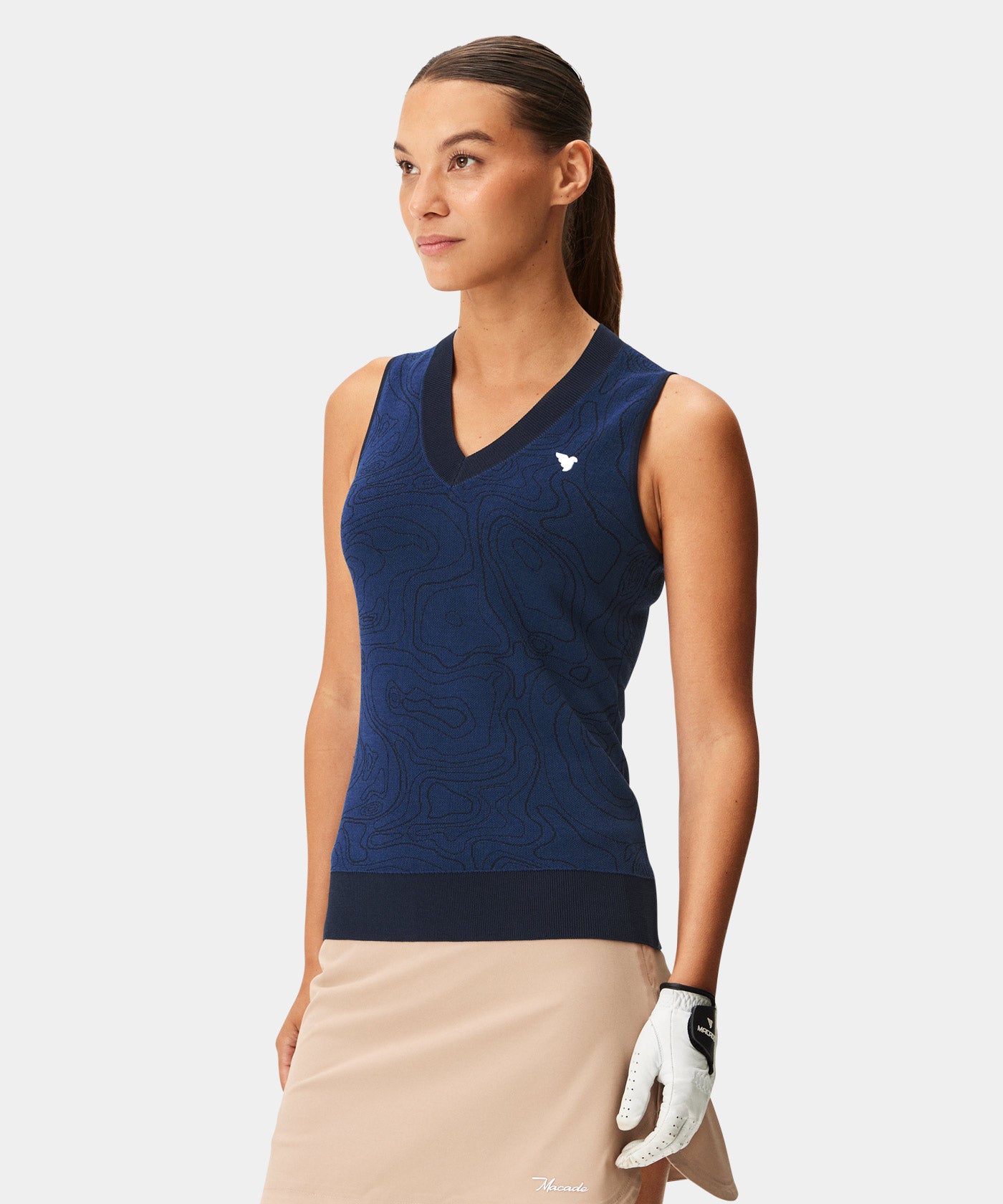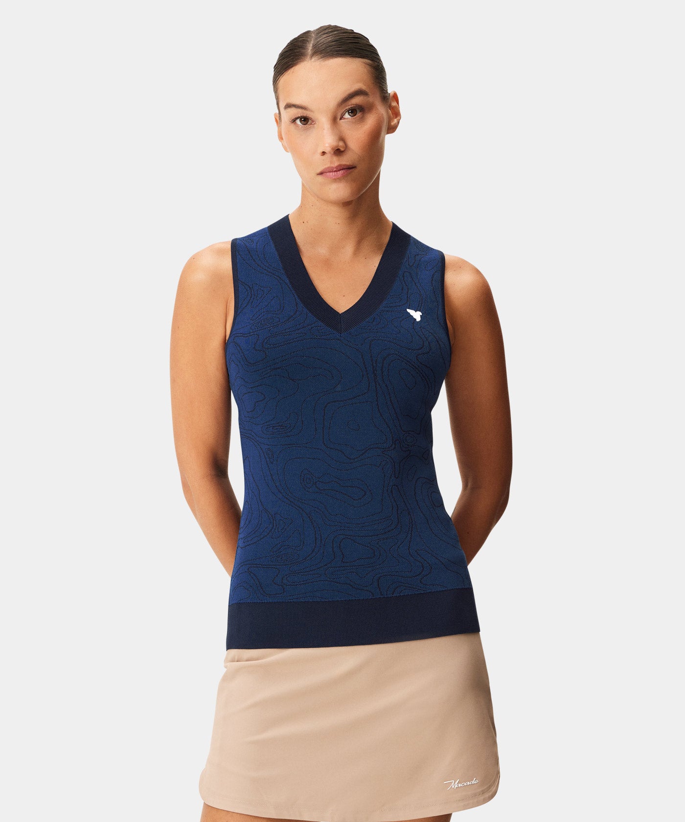 Sleeveless and buttonless. The Ora Dark Blue Sleeveless Shirt shines in its simplicity. An excellent solution to staying cool during the summer golf season.
