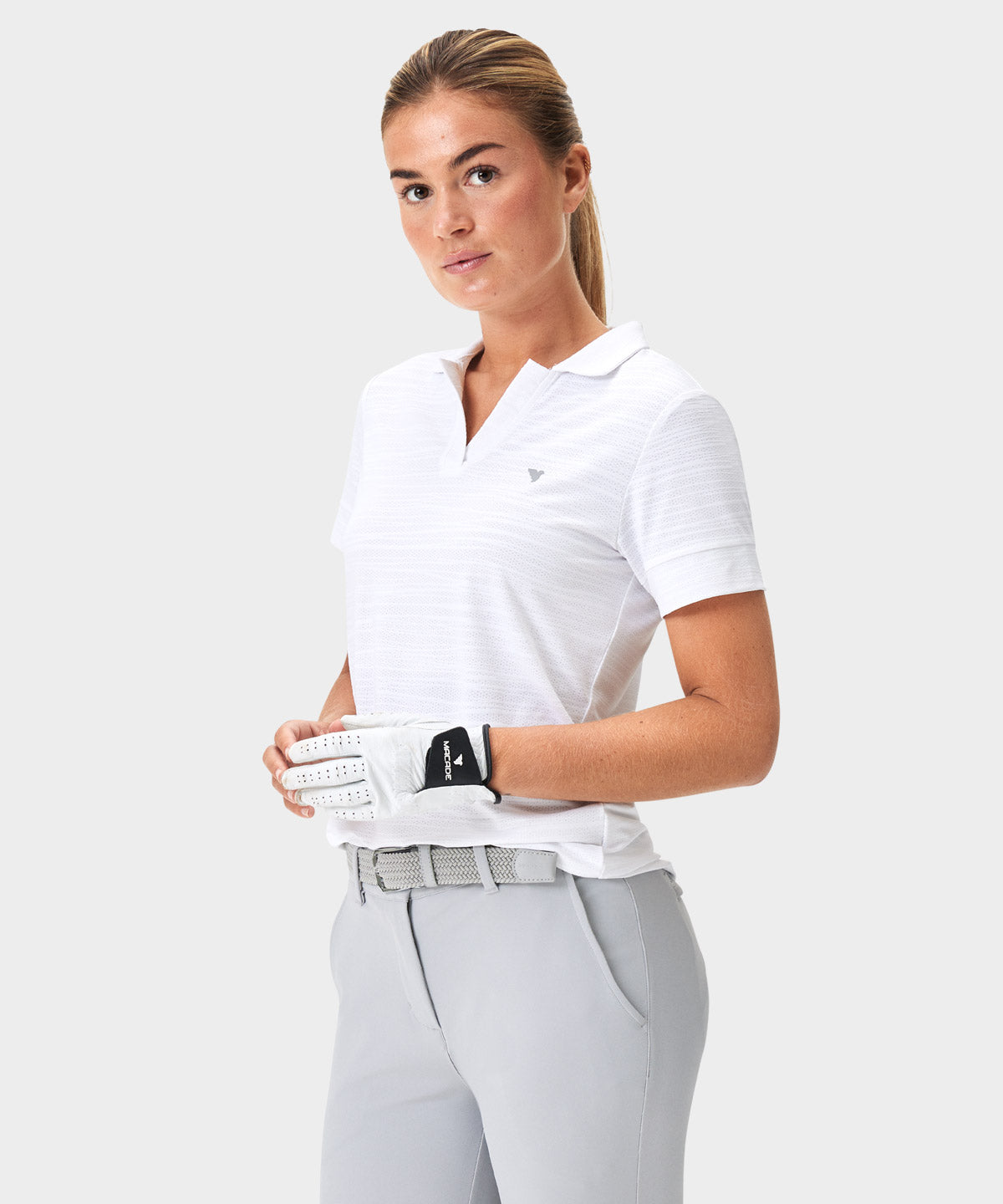 Skye White Course Knit Polo