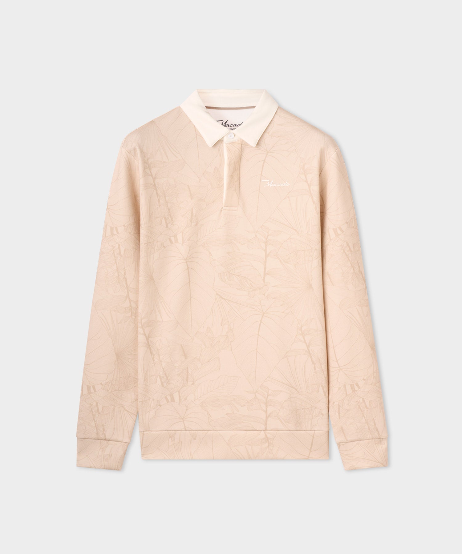 A soft, mid-weight crewneck sweater designed for early training sessions at the course. Topographical map elements provide visual character throughout the entire piece. The raglan sleeves provide an athletic silhouette to this limited edition piece designed for the Masters Collection, accented with the unique Macade Script logo on the chest.